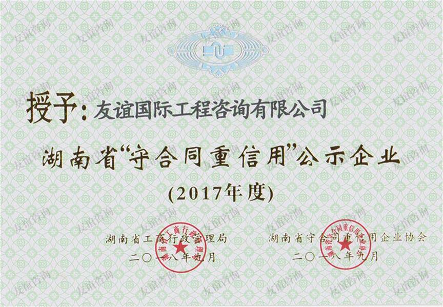 • 2017年度湖南省“守合同重信用”企業(yè)